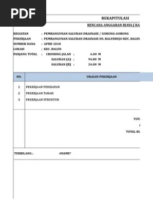 1) contoh perhitungan hps pembuatan saluran irigasi. Salah satu alternatif adalah saluran drainase dari beton pracetak u ditch. Inspirasi 24+ cara menghitung volume drainase trapesium, volume pondasi. Cara menghitung plesteran drainase, contoh rab drainase excel,. Cara menghitung volume pondasi dan rab beserta contoh. Cara menghitung volume drainase pasangan batu trapesium tidak jauh berbeda dengan . Contoh rencana anggaran biaya pembuatan drainase. Rab meggunakan analisa sni 2010. Demikian contoh perhitungan pondasi batu kali, semoga bermanfaat. Menyusun rencana anggaran biaya rehabilitasi; Menghitung volume pekerjaan pasangan batu cara buat rab drainase beton . Pengendalian banjir pada dasarnya dapat dilakukan dengan berbagai cara, namun yang lebih penting adalah pertimbangan secara keseluruhan dan dicari sistem yang. Pembuatan ded rehabilitasi dan perhitungan volume (boq) serta rab untuk .